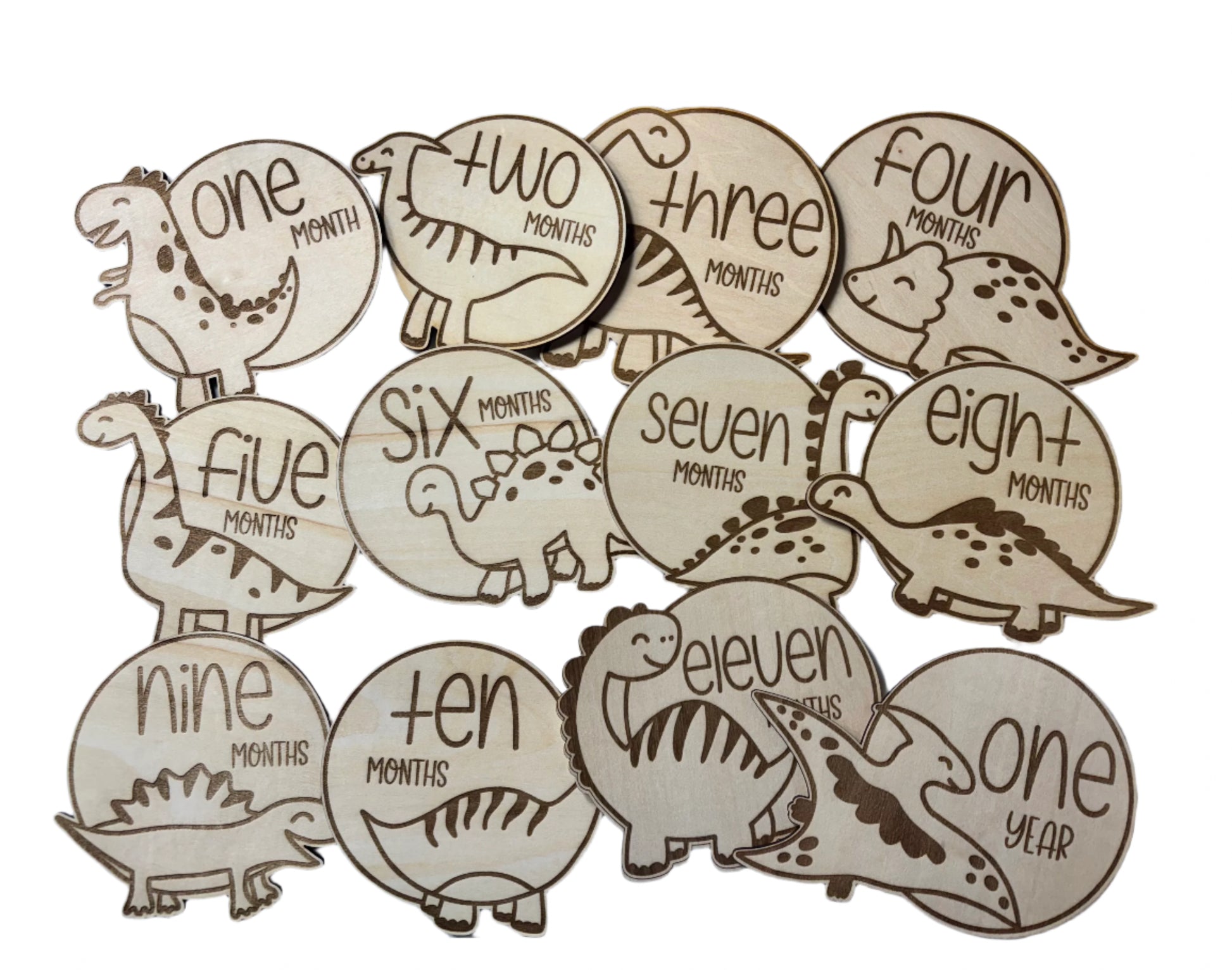 Capture your baby's milestones with our Baby Dino Monthly Milestone set. Each month, from 1 to 12, includes a unique dinosaur design, adding a fun touch to your photos. Document your little one's growth and development with this must-have set.
